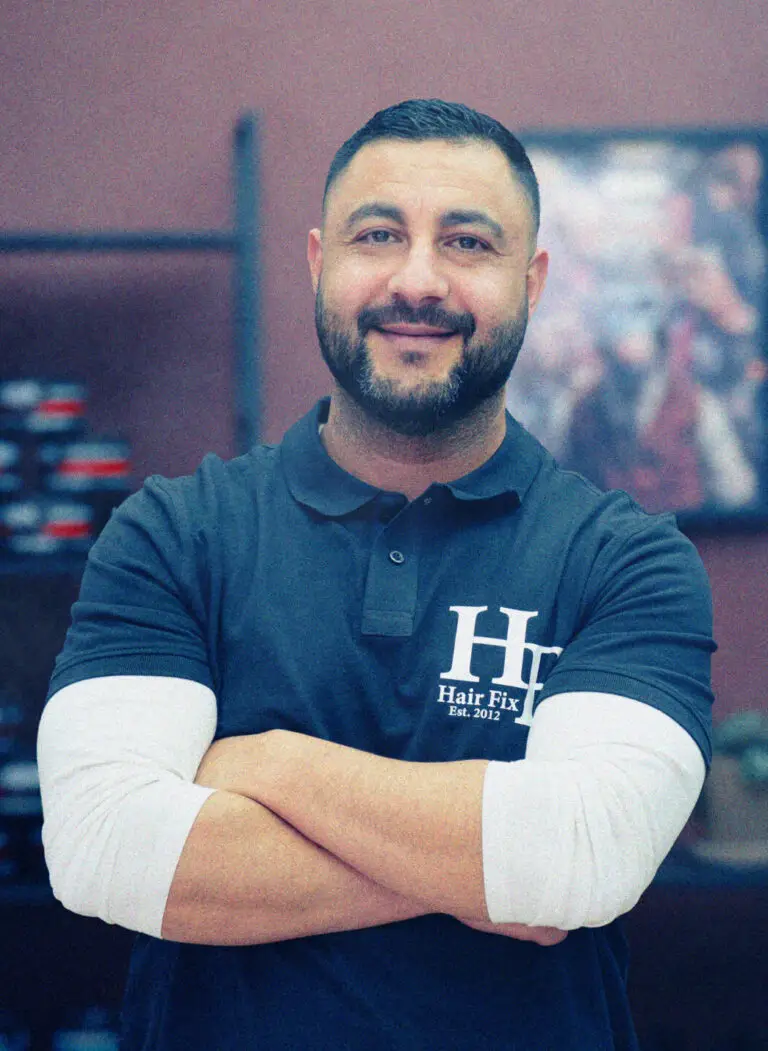 Hassan Malak er ejer og grundlægger af Hair Fix med over 20 års erfaring i moderne herreklip. Han er specialist i skarpe fades, skin fades samt præcist veltrimmet skæg og moustache. Med fokus på detaljer og stil sørger han for, at hver kunde forlader stolen med et skarpt og personligt look.